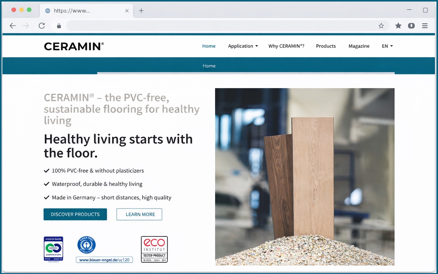 A CERAMIN egy innovatív anyag padlók és falak számára – PVC-mentes, tartós, vízálló, teljesen újrahasznosítható. Tökéletes választás az egészséges otthonhoz.